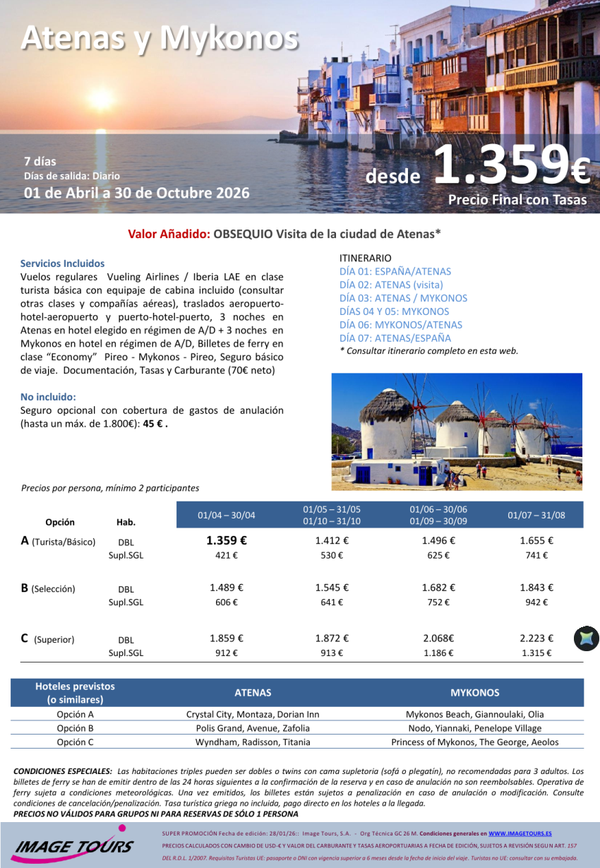 GRECIA verano 2026. Combinado Atenas y Mykonos, 7 días desde 1.359€